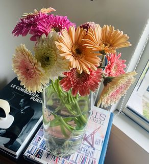 2本ほどへたっていましたが、ガーベラの特性かなと思うので許容範囲です。色も種類もバランスが良く、リビングが華やかになりました。箱が届いて開封する時のワクワク感がたまりませんでした。 お花とフラワーフードが入っていたので、直ぐに水揚げして綺麗な花瓶に入れました。(お手入れ方法も改めて書いていただいているので、とても親切です) 既に次は何にしようか考えています。 毎日アプリを覗くのが楽しみです。