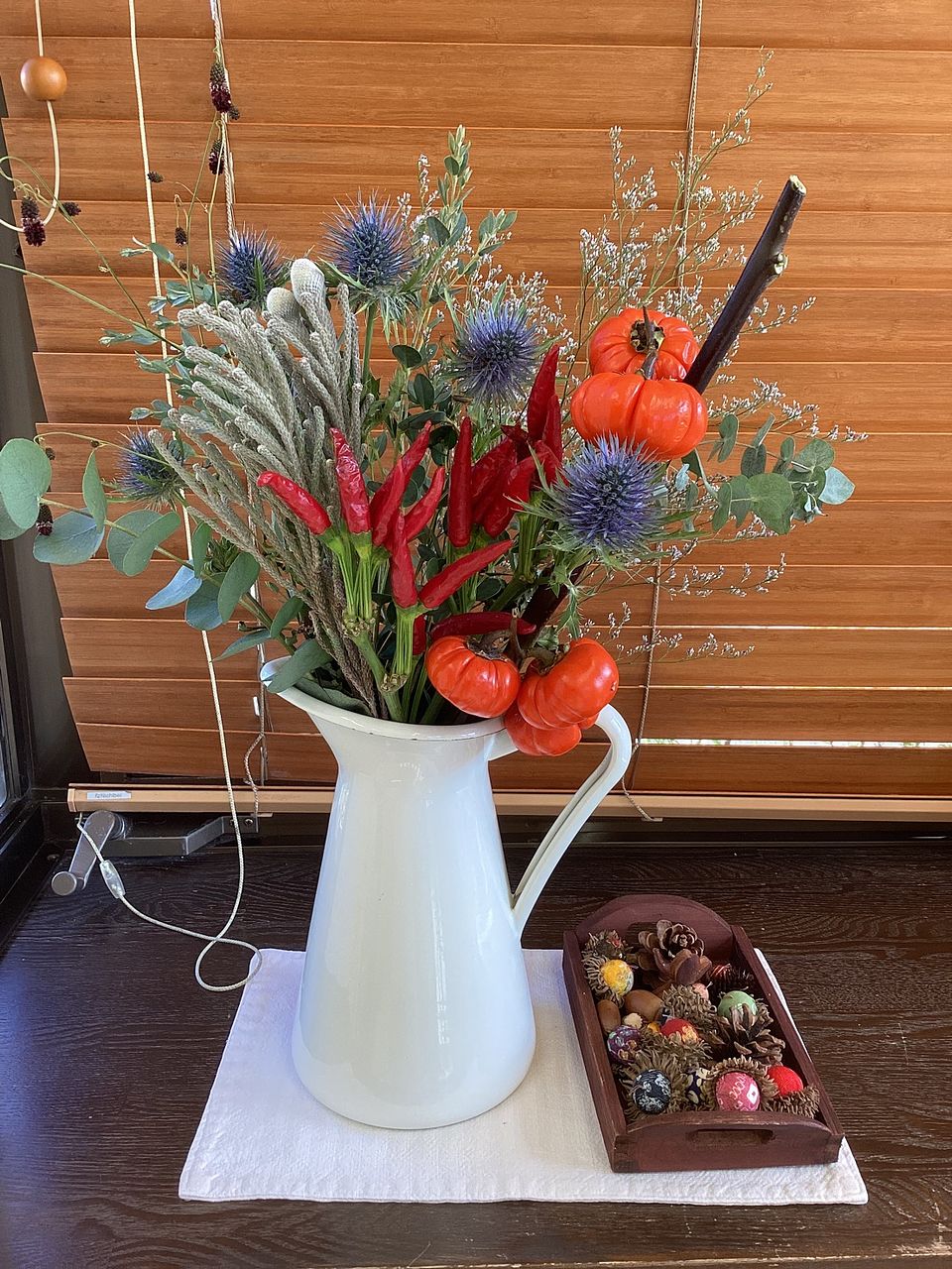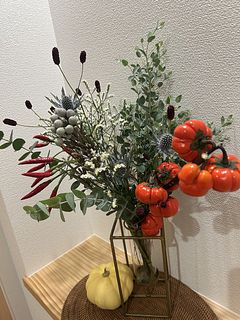 パンプキンの実が10個ほどありましたが、うち3つがオレンジで残りは緑。オレンジの実が半日でほとんど虫喰いになってしまったのが残念です。緑のものがこれからオレンジに色づけば嬉しいです☺️ その他の葉物やお花は美しく満足です。