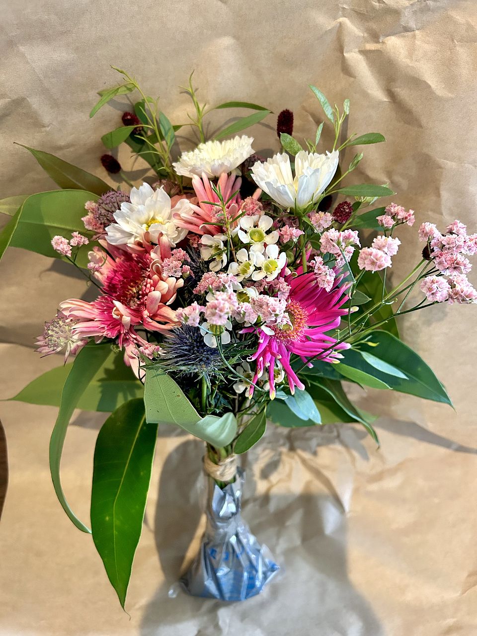 くすみピンクのコスモスが特に可憐で、素敵なブーケでした