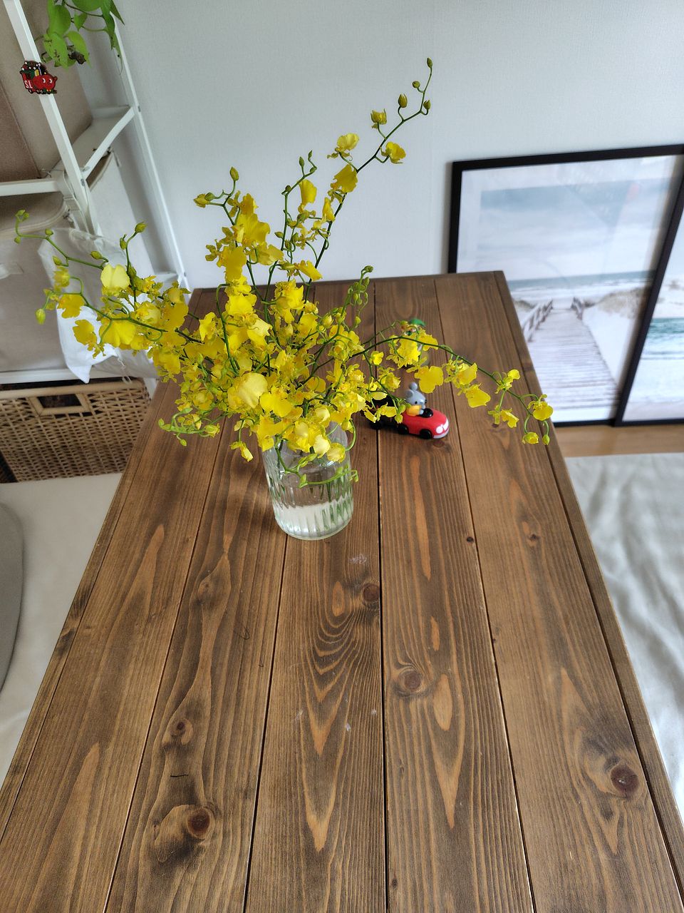 思っていたよりお花が少なかったけど どうやって生けようかなと楽しんでいます。 もう少し短くしようかな♪♪ 黄色のお花がお部屋を パッと明るくしてくれました(*´˘`*)♡