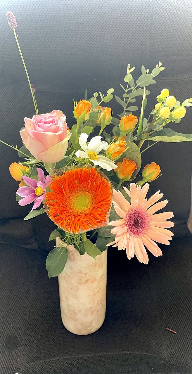 盛りだくさんのお花で元気になれます、普段頼まないお花もあり目先も変わっていいと思います、ありがとうございました。