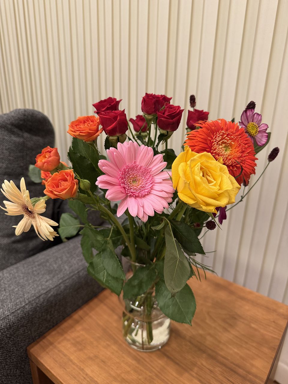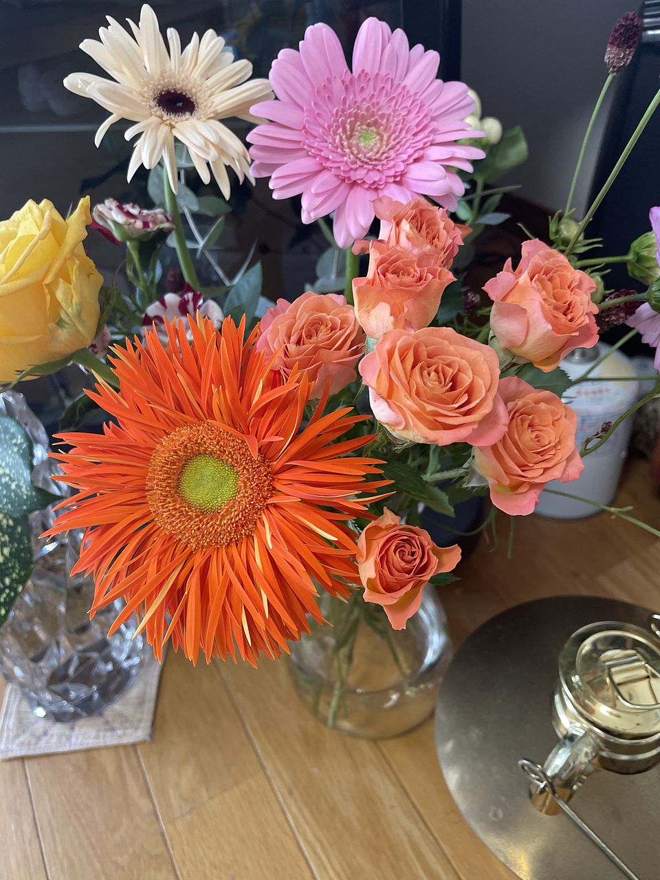 好きなオレンジ色のバラやガーベラ、他にもたくさんの種類が入っていて嬉しかっです 気分があがりました♪