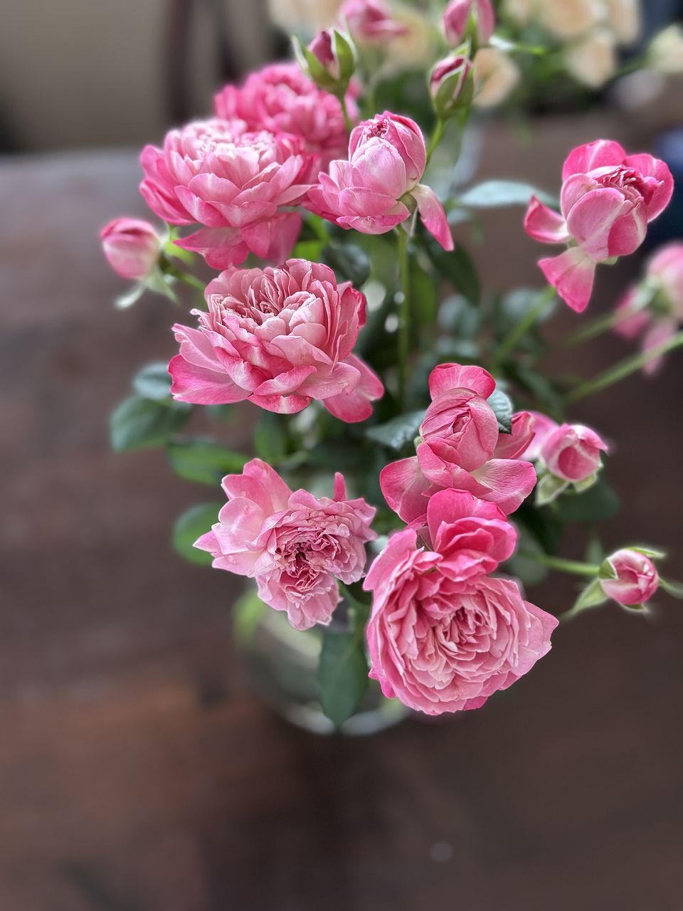 箱を開けた瞬間、漂うバラの香りに思わず深呼吸をしたくなるはず。パリスはダマスクとミルラの香りが楽しめます🌹外弁の濃いピンクから中心にかけてくすんでゆくピンク色のグラデーションがうつくしく、ロゼット咲きの品種です。