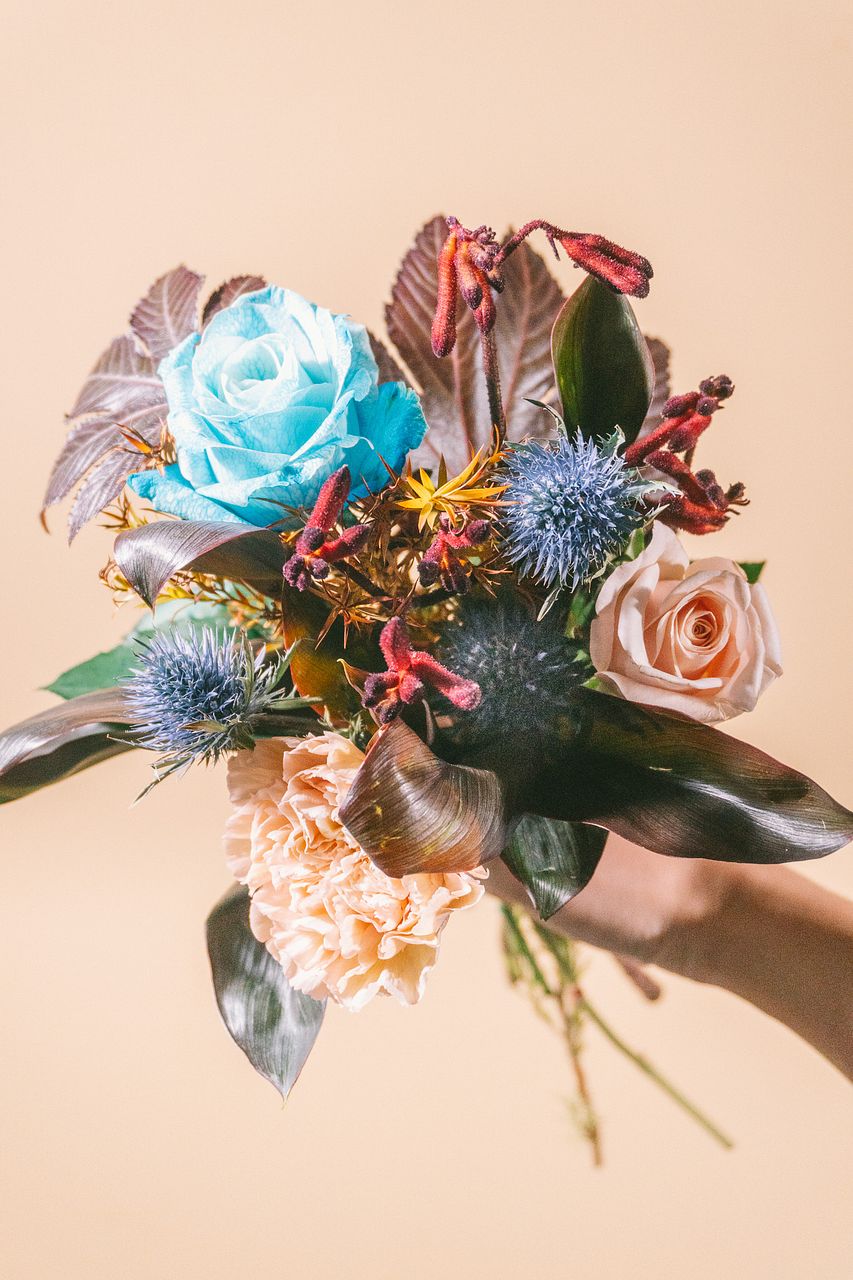 青く透きとおる空のような色と、秋の大地の温もりが交差する「そらいろ砂原のブーケ」🪽🍁