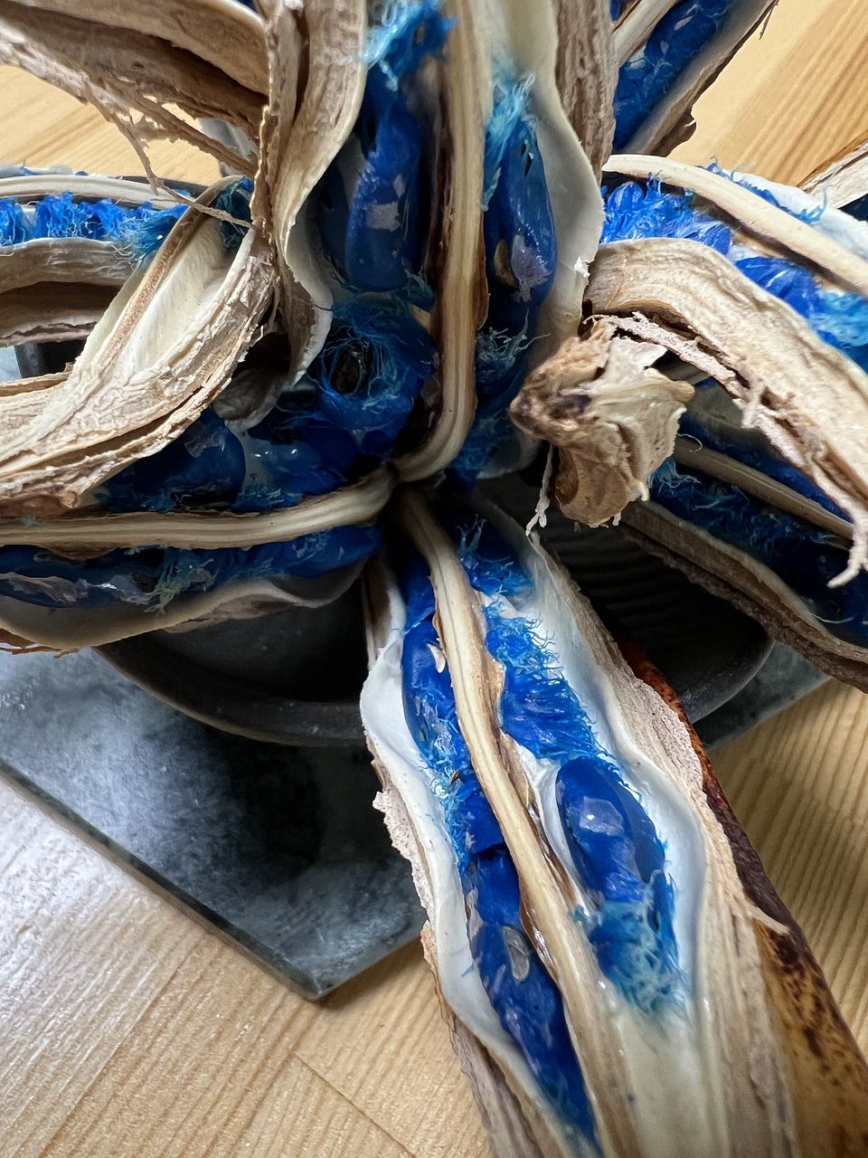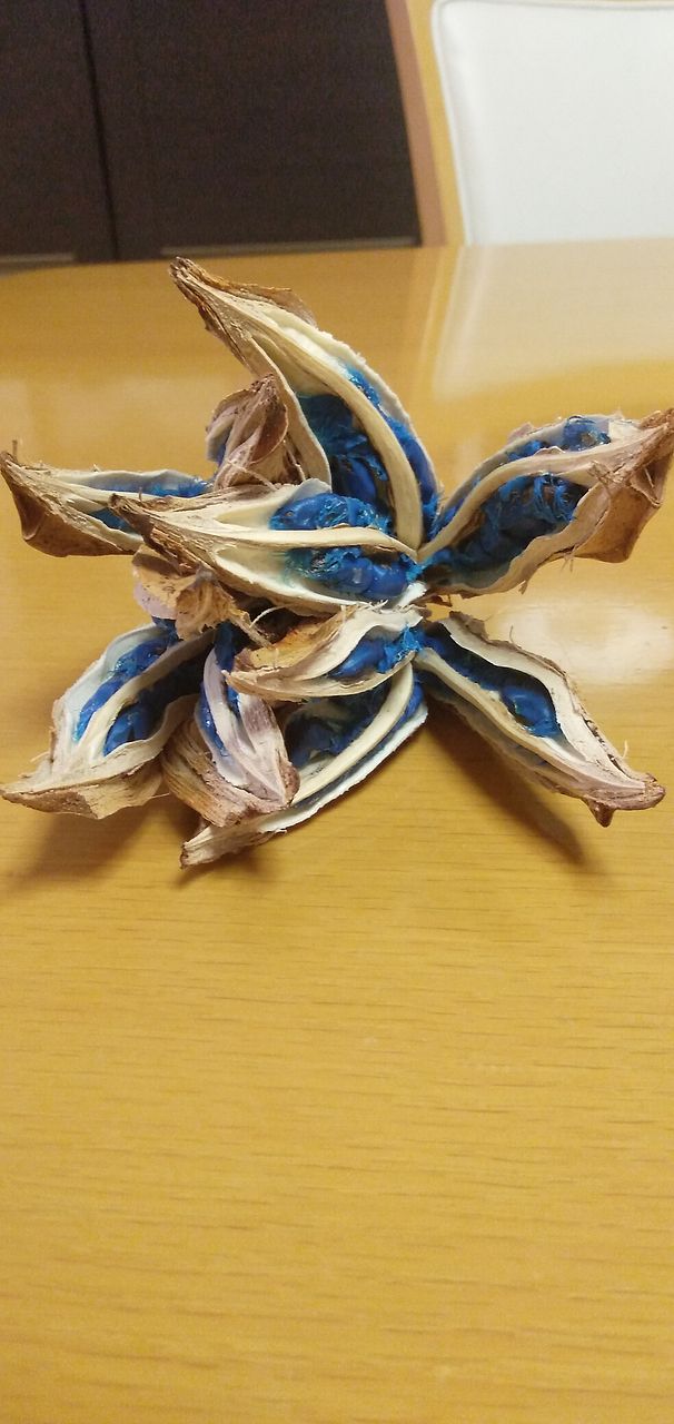 コバルトブルーの種子がとっても鮮やかで、家の中のどこに置いても素敵な空間をつくってくれます。 なんとも言えない不思議な形が、雰囲気あります。 すごく気に入っています。