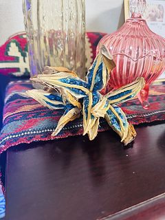 ちょっとお高いかなと迷いましたが、届いてみたらなんとも言えぬブルーが素敵で、買ってよかったと思いました。6月に購入したスワッグと一緒にお気に入りコーナーに飾っています。