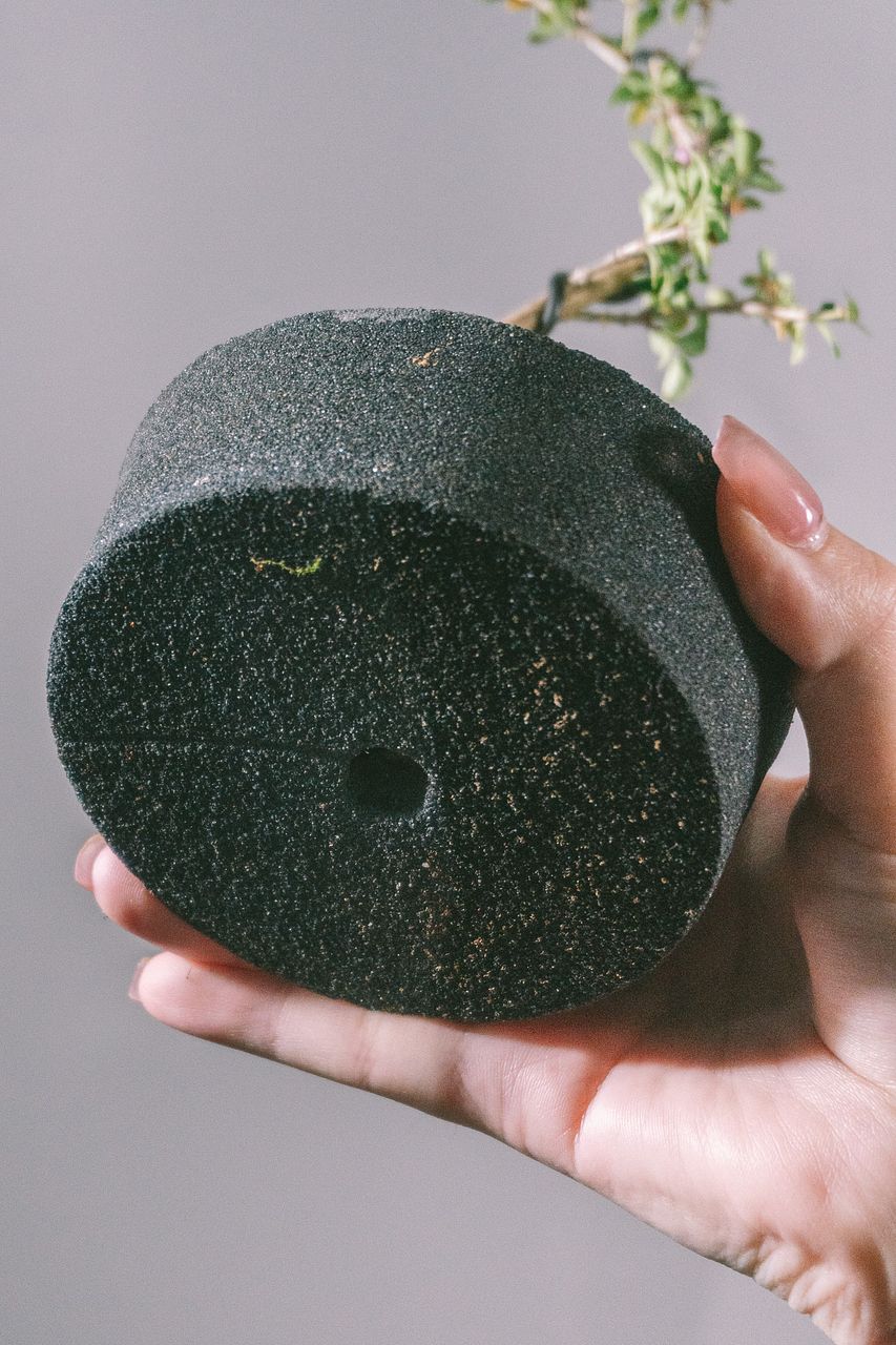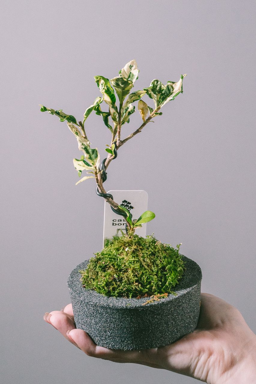 苔玉が土を包み込み、緑の柔らかな質感と器のシンプルな黒が調和し、和モダンな雰囲気を演出しています✨