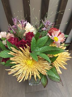 ボリュームがあり、360°どこから見ても素敵でした💕 どこを正面にしたらいいか迷っちゃいます色味も秋らしくシックな感じで可愛いぃ😍 めちゃくちゃ気に入りました🫶 お値段以上のブーケだと思います!