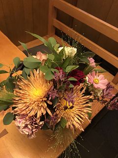 くすんだ色は苦手だと思っていたのですが 秋を感じさせてくれる素晴らしい花束で とても気に入ってます!