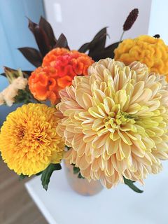 色合いが気に入って、即購入させていただきました。実家にも同時期に。大振りな花で、ケイトウもかわいらしく、お気に入りです。