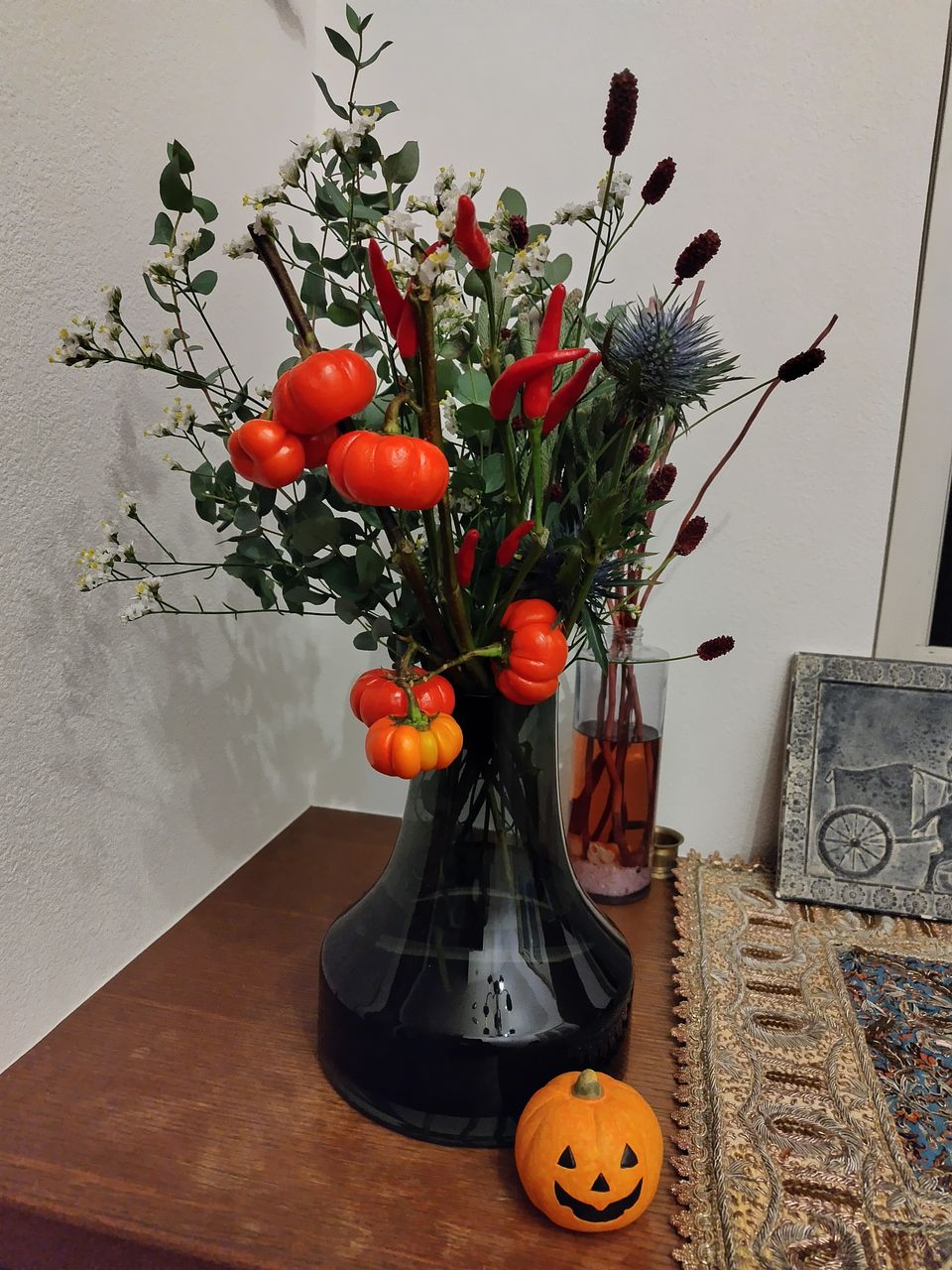ナチュラルな雰囲気たっぷりのハロウィンブーケはいかが?パンプキンツリーはなんとナスの仲間。