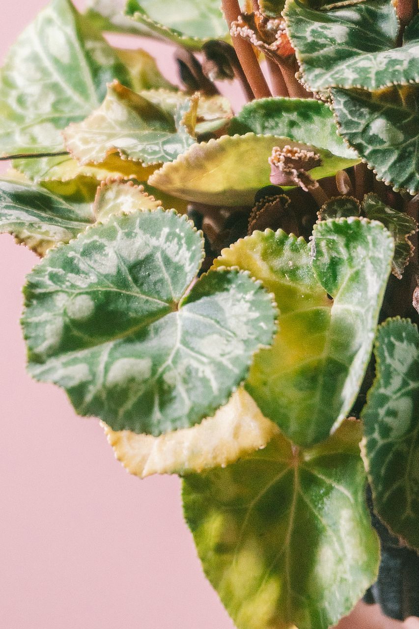 葉が一部黄色に変色している場合がございます。変色している葉は茎を根本から引っ張って取り除いてください。