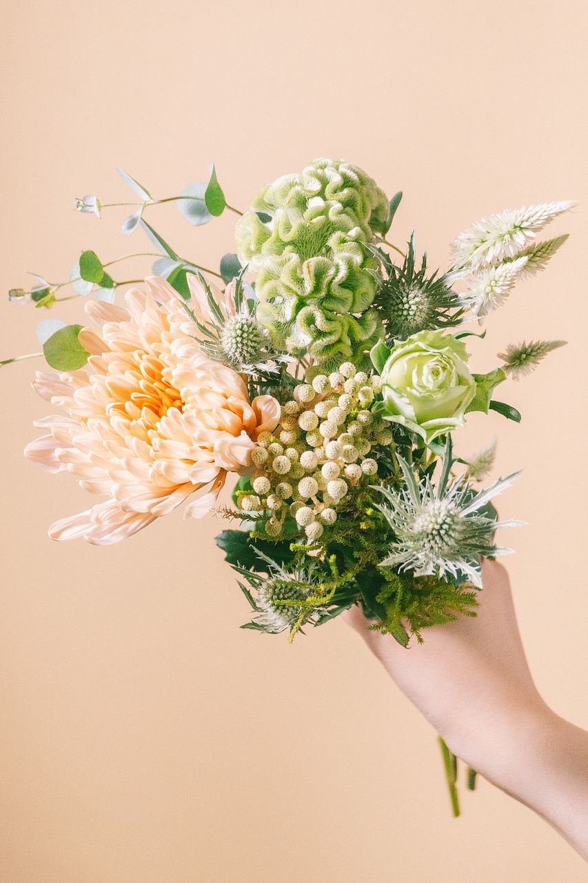 グリーンをベースに、アイボリーやベージュを組み合わせた、落ち着きのあるナチュラルカラーのブーケ🌿まるでピスタチオを思わせるやわらかな色合いが特徴で、シンプルながらもスタイリッシュな存在感を放ちます。