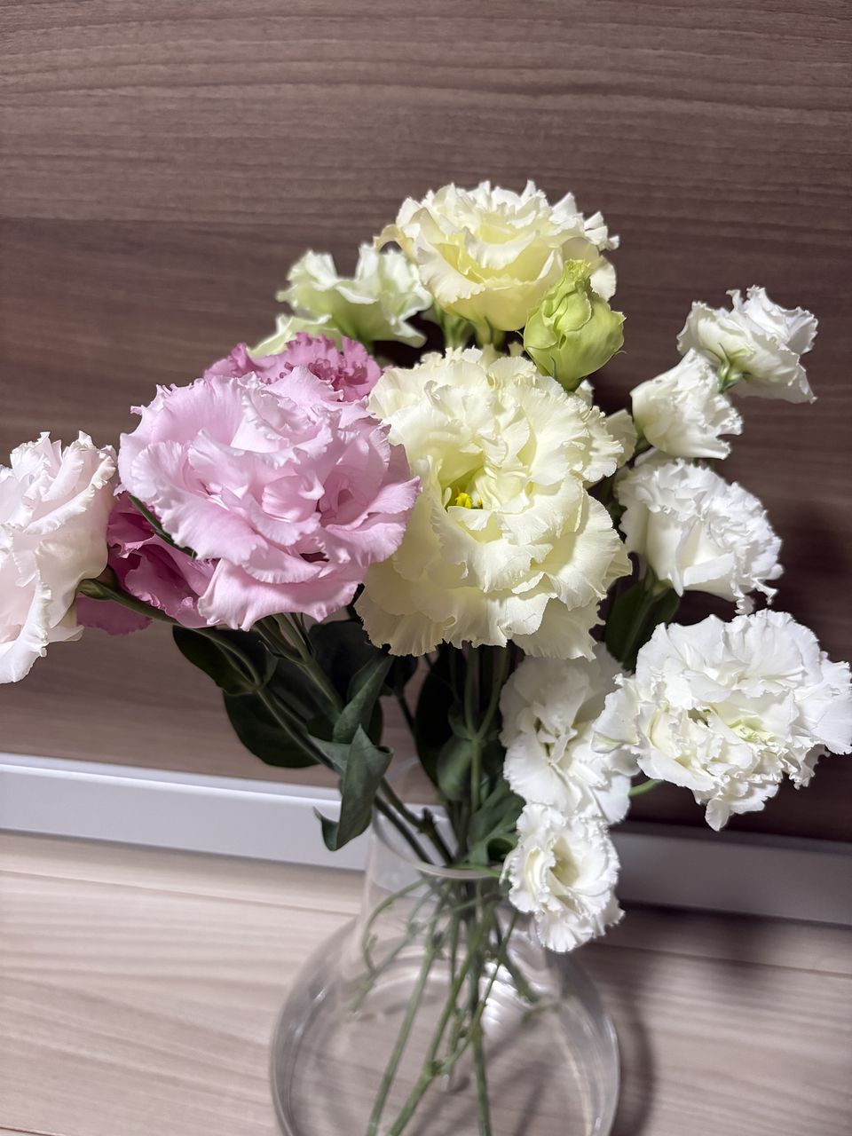 フリルたっぷりで、様々な色合いのとても素敵なトルコキキョウでした❣️ トルコキキョウはこの時期でも比較的もちが良いお花ですので、これからもゆっくり楽しみたいと思います♪