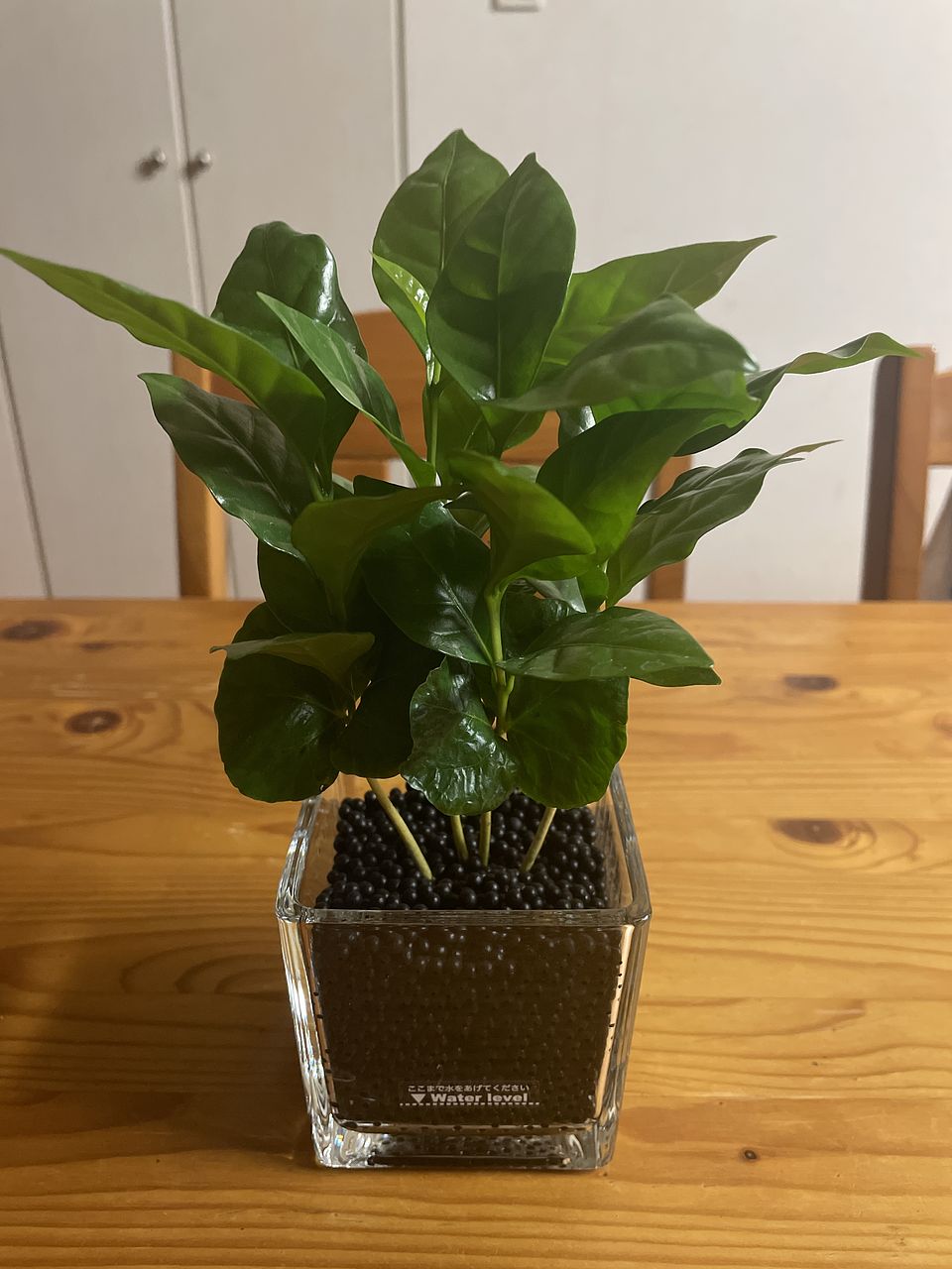 葉っぱも艶々していて元気なコーヒーの木が届きました。 大切に育てていきたいと思います。 チャコボールとガラスの鉢も素敵です。