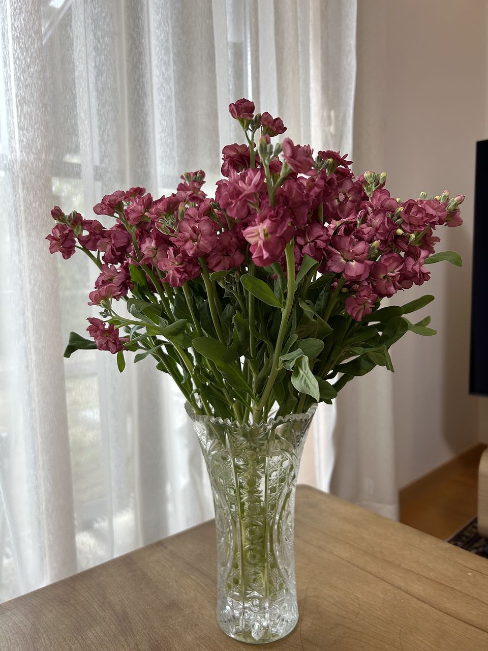 ストックの香りの成分はクローブ(丁子)のスパイシーさと、ほのかに甘いパウダリーな香りが混ざっています。ぜひ香りも楽しんでみて😉