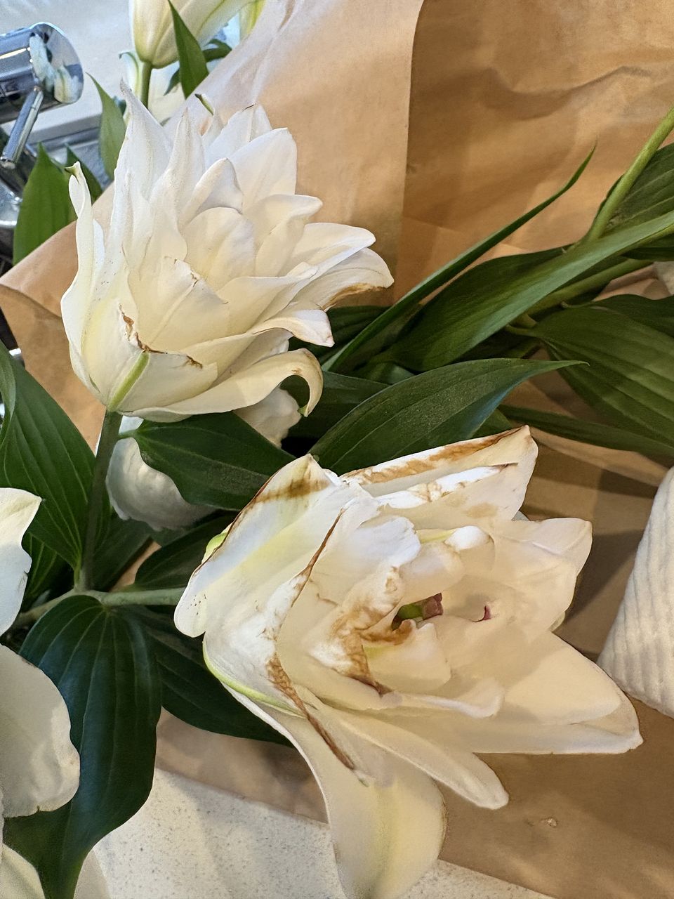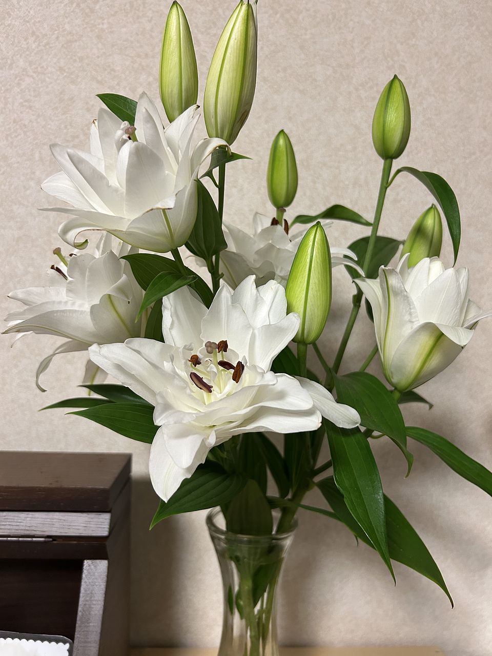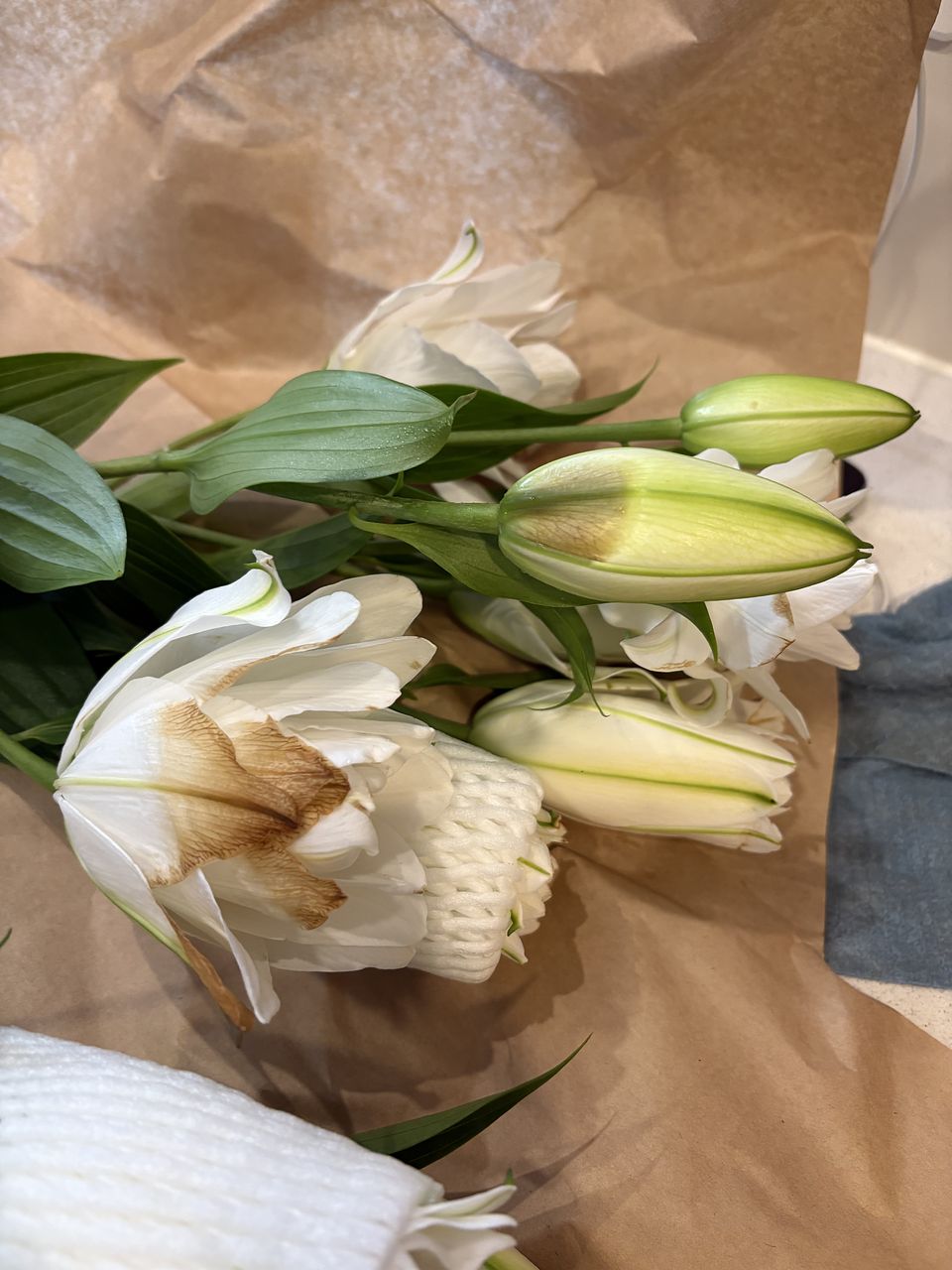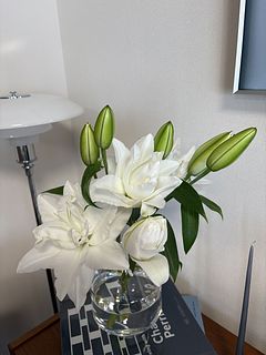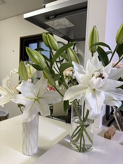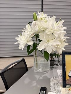 前回が素晴らしく状態がよくて、今回は二箱頼みました。前回が一輪以外すべて蕾できたので良かったのだとおもいます。今回はまず咲いているものは全て花びらのふちが茶色になっていた。そういうのもあるのは、分かっていましたがひどすぎる。あとは写真をみてください。百合が大好きで以前もよく頼んでいましたが、酷い状態が続き頼むのを辞めていました。今年に入って一回頼んでやはりダメで、でも欲しくて、先週来たのが良かったので、今回も頼んだら案の定でした。皆さんのレビューがいつも綺麗とか書いているのが、不思議です。配送、梱包、それとも私の運が悪いのか分かりません。一枚目は今日写した先週きた百合です。