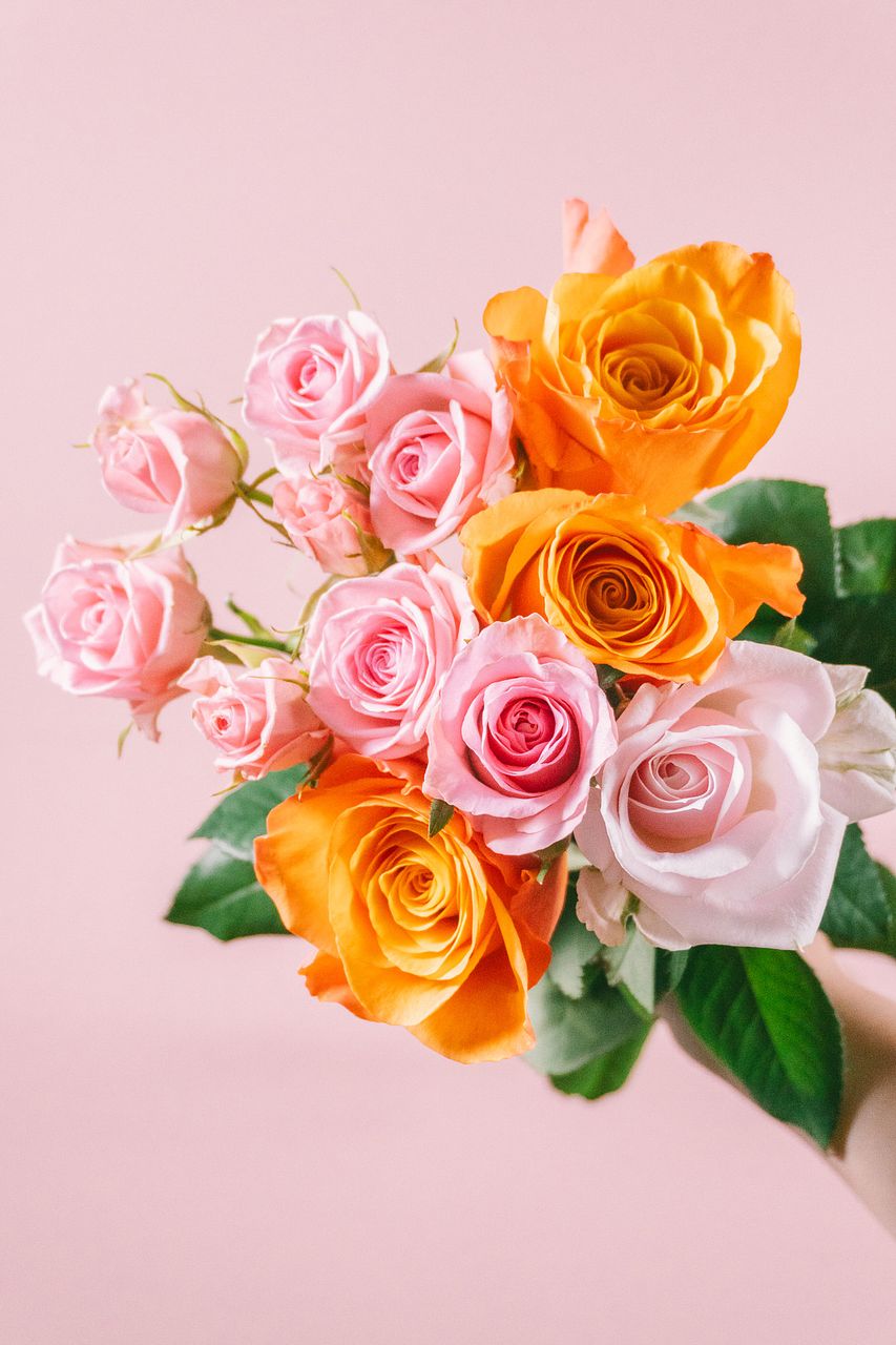 ピンクやオレンジや赤、スプレー咲きなどの可愛いローズをギュッと束ねました🌹💛
