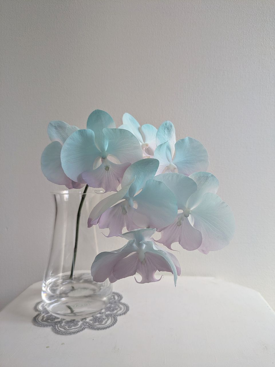 パウダーブルーからラベンダーのグラデーションが幻想的🦄✨かわいい色スプレー染めの大輪ファレノプシス(胡蝶蘭)が入荷しました。