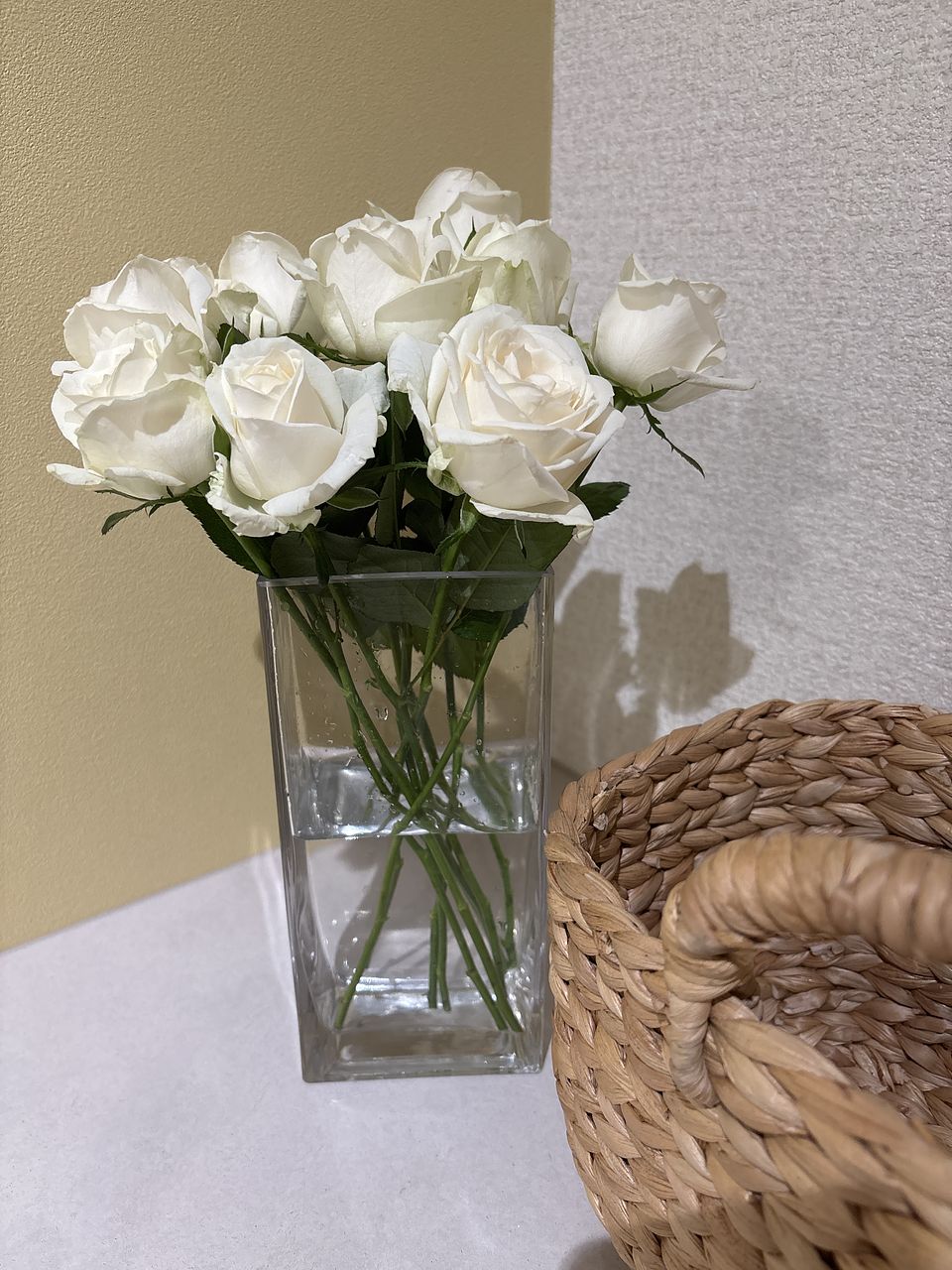 写真の通り 、素敵な白いバラでした 花瓶も白で統一😄 素敵な花束をありがとうございます。 心が穏やかになりました😊