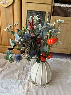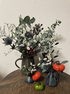 パンプキンの実が10個ほどありましたが、うち3つがオレンジで残りは緑。オレンジの実が半日でほとんど虫喰いになってしまったのが残念です。緑のものがこれからオレンジに色づけば嬉しいです☺️ その他の葉物やお花は美しく満足です。