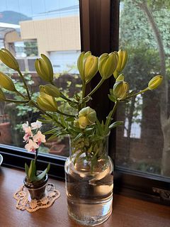 グリーンがとても涼しげです! 日が経つに連れ色が刺してきて印象が変わり 楽しめました!とても長持ちしてます。