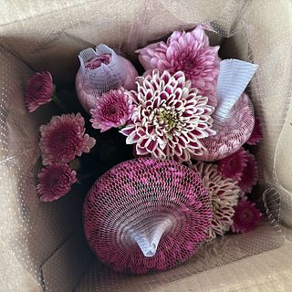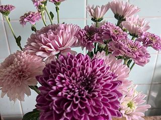 お墓参りのお花で購入しましたがとても可愛い色合いでした。 マムは大きいものには丁寧に網がかけられていて、2日間そのまま花瓶に入れて保管しておきましたが傷まなかったです。 ワレモコウを足して飾りました。