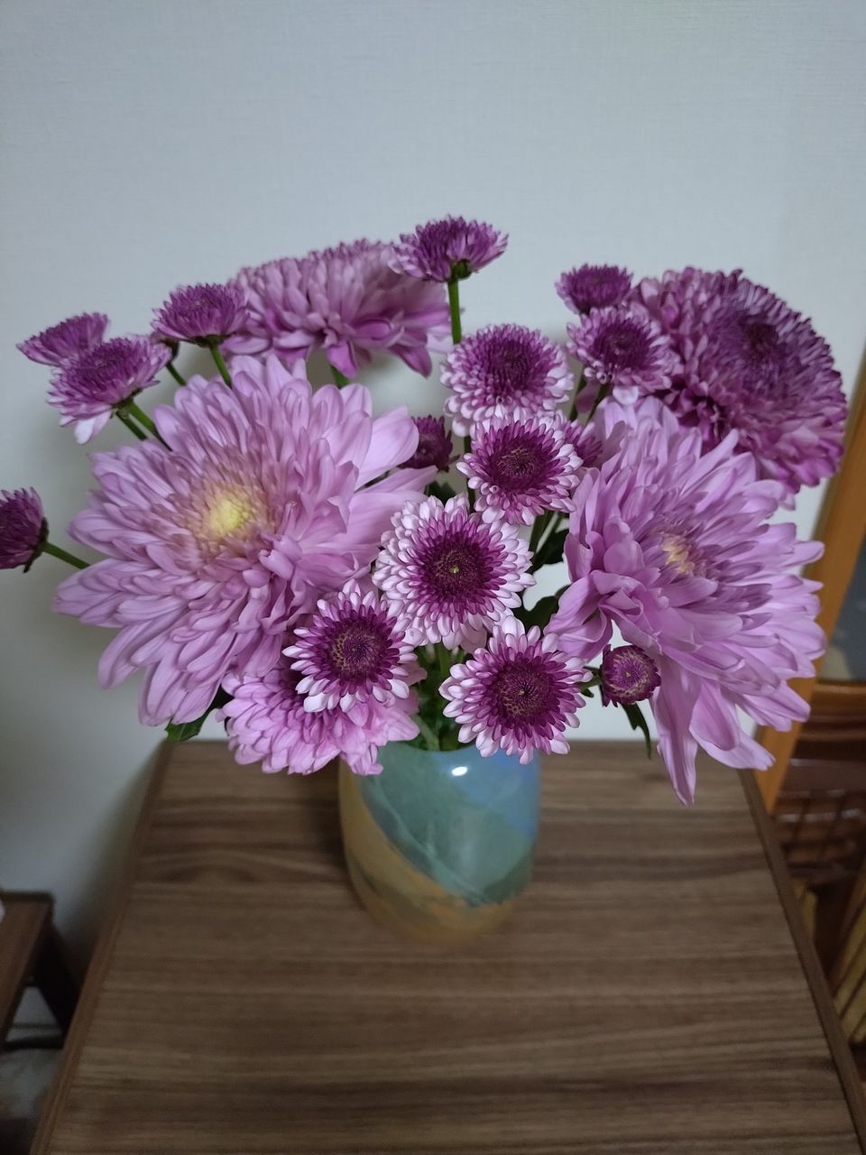 近くの花屋さんでは見たことない、綺麗な色のマムが届きました✨
