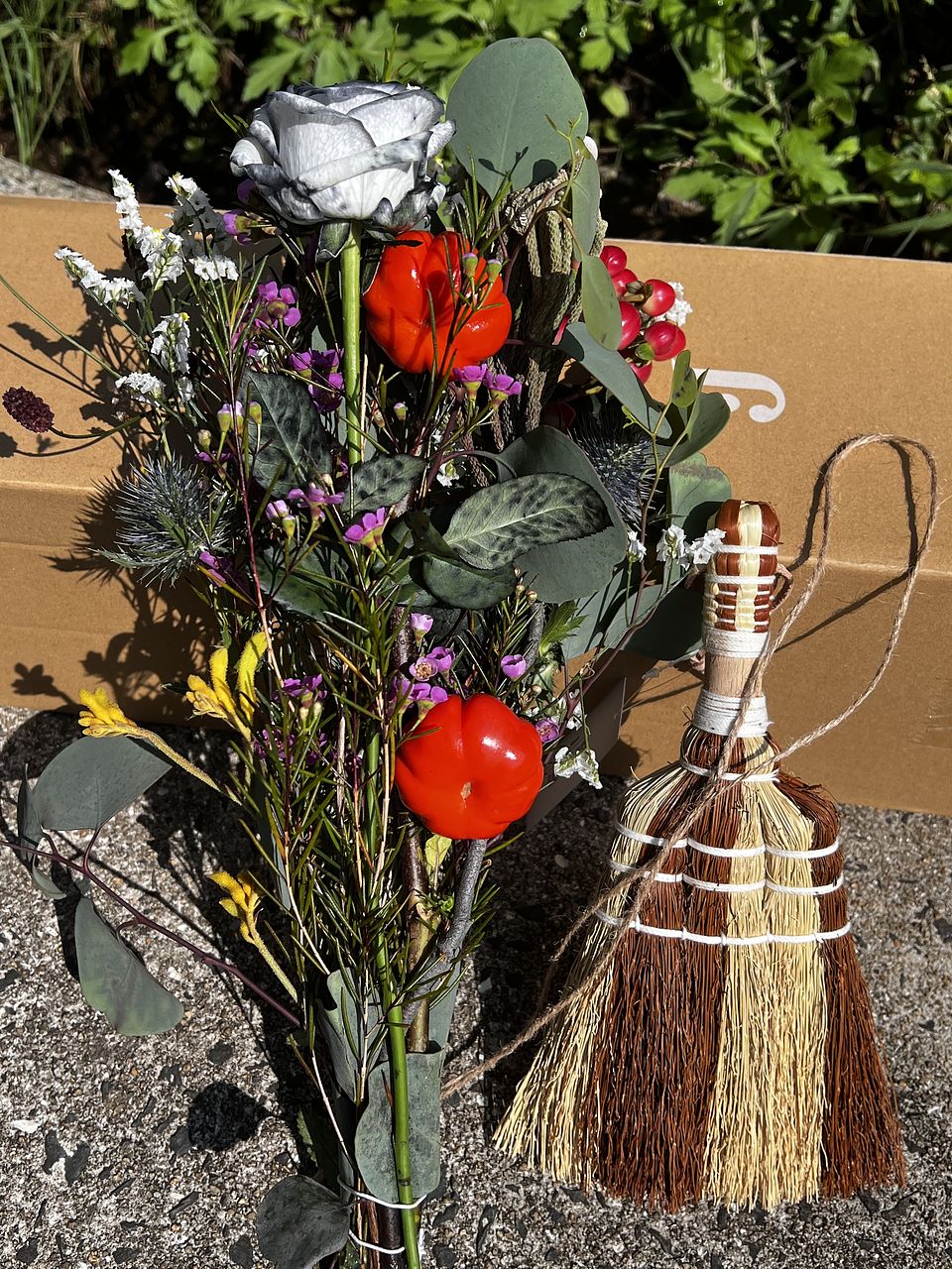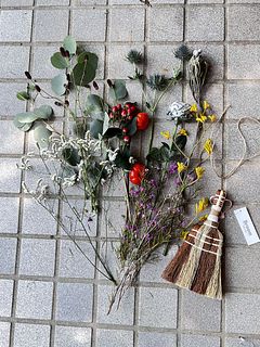 予想以上の花材(10種)に感激してます。 ホウキも2色で素敵です。 届いたばかりですが、どのように配置しようか、今からワクワクです。 いつも丁寧な梱包をありがとうございました。