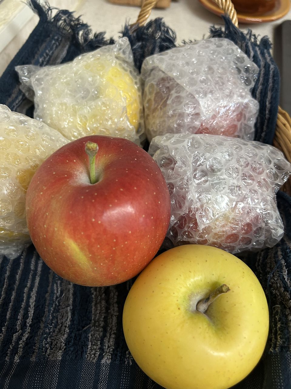 今年は春に雹(ひょう)に当たってしまい一部のりんごの表面に傷がありますが、天候に恵まれ、糖度はいつもより甘みが増して仕上がっているそう🙌