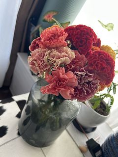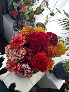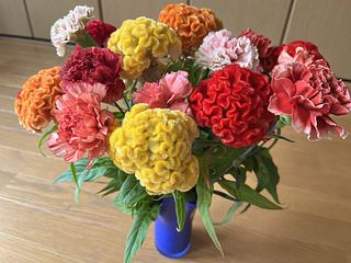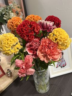 カーネーションは水揚げ後もあまり元気がないですが、ケイトウが本当に素敵です!ボリュームもありいい感じです。あとは少しでも長く保てば嬉しいです