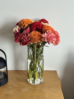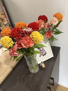 とてもフレッシュでカラフルなお花が届きました! ケイトウもカーネーションも初めて見るお色がたくさんで、とても贅沢な気持ちになりました。 実はケイトウは小さい頃から形が苦手だったのですが、思い切って購入してみたら可愛いらしくてお気に入りになりました! 今は届いたそのままの長さで花瓶に差していますが、毎日のお手入れで葉を落としたりカットしたり色々な器にいけたり長く楽しみたいと思います。 お花のある生活が好きで毎月1つ注文しているので、次回もまた期待しています♪