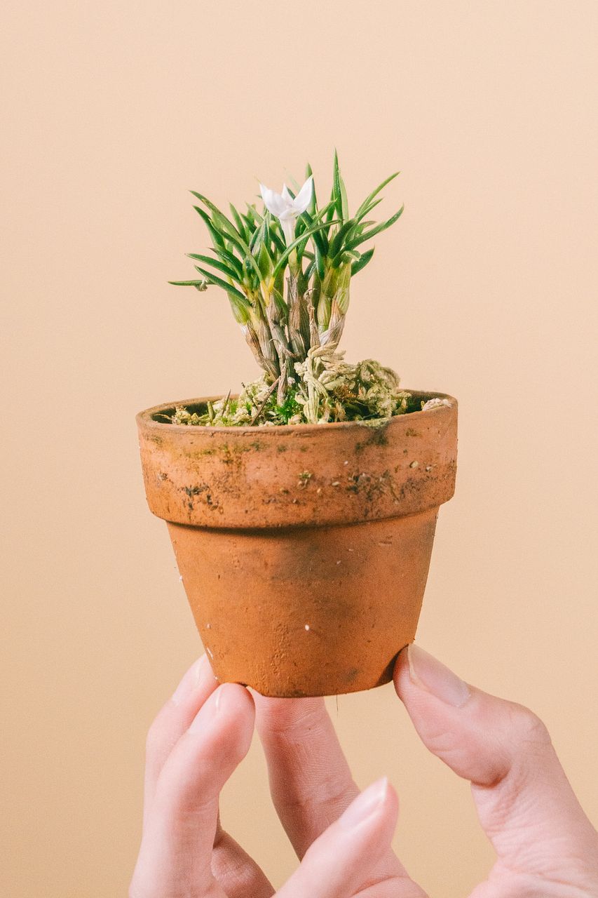 鉢に苔がついています。