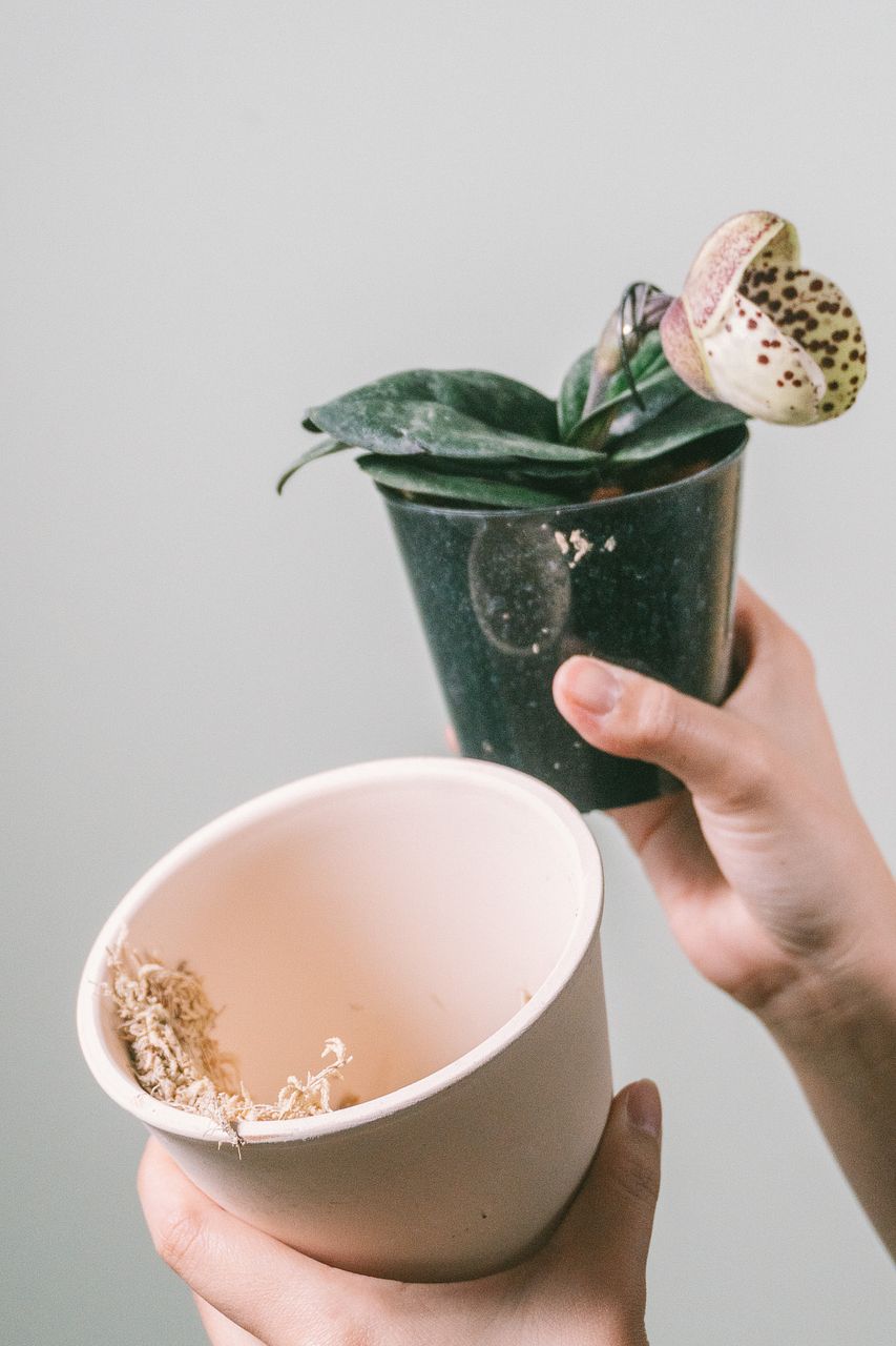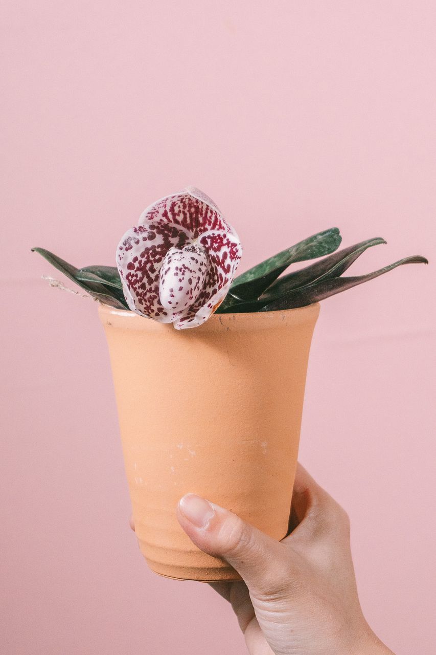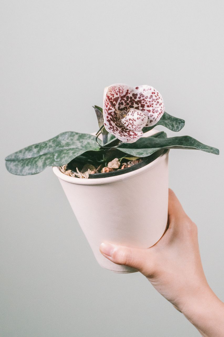小さな花に、美しい斑点模様が浮かぶパフィオペディラム「ベラチュラム」。