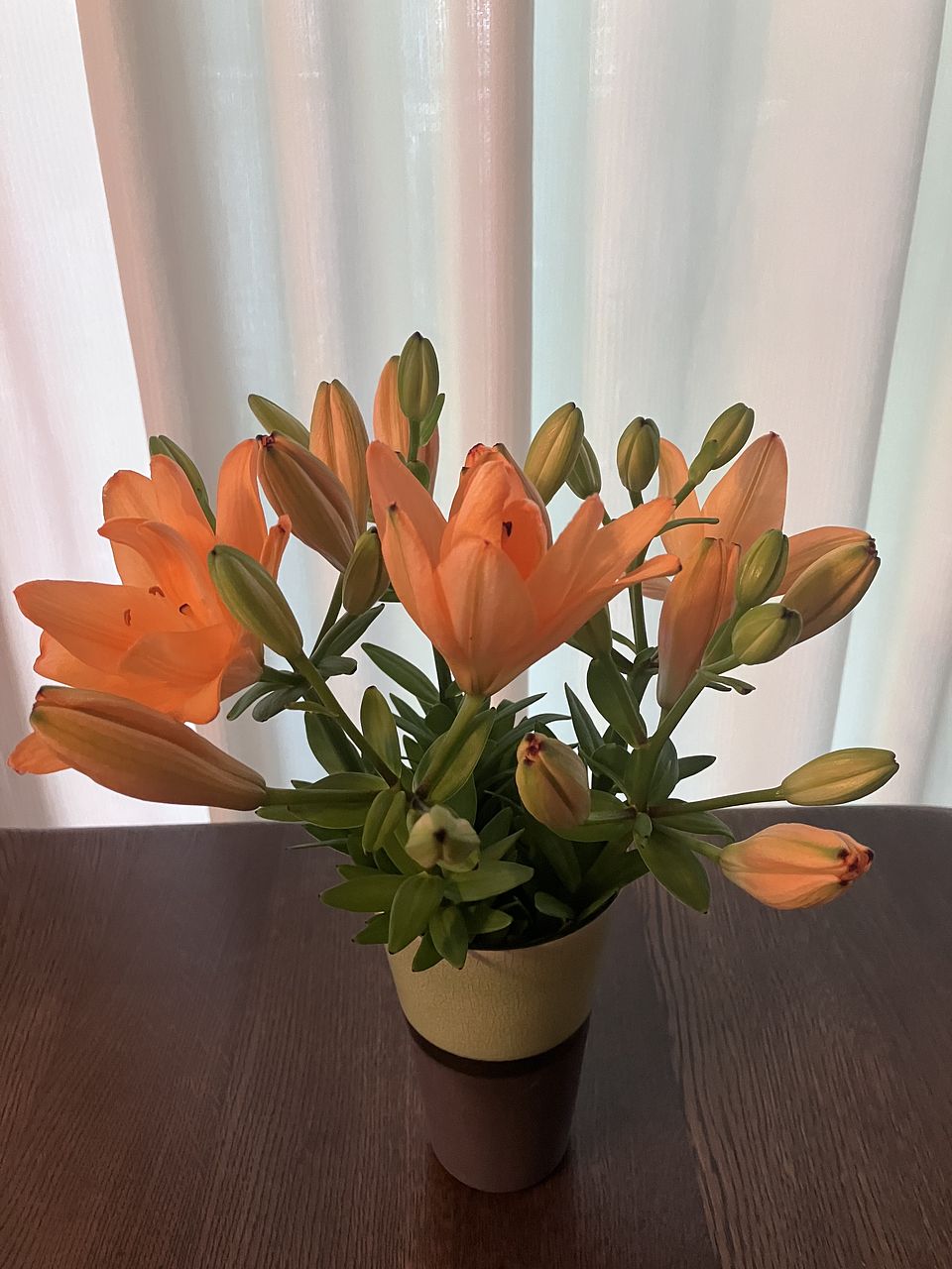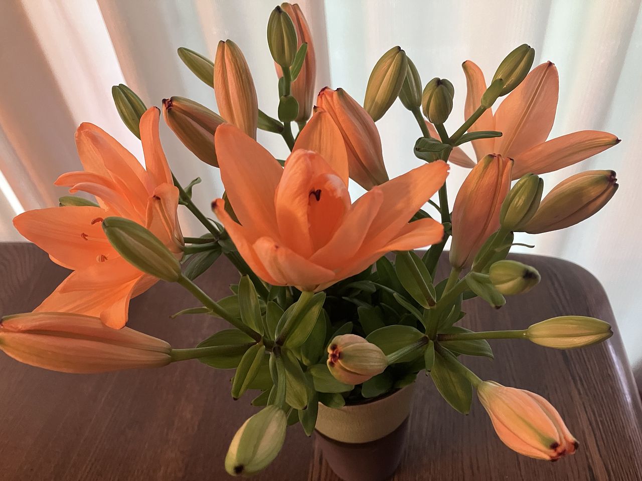 到着した日はすべて蕾でしたが、3日目、沢山の花が咲いてきました。まだまだ蕾もあるので、楽しめそうです! 新鮮なアプリコットリリーありがとうございました。