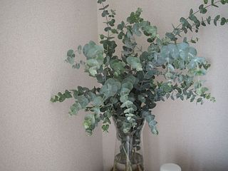 ものすごいボリュームでいくつかに分けて生けました。 色々なところからユーカリの香りが漂い心地よい空間になりました。 葉先は少し枯れているところもありましたが、カットすれば全く問題ありませんでした。長持ちしそうなので、楽しみです。