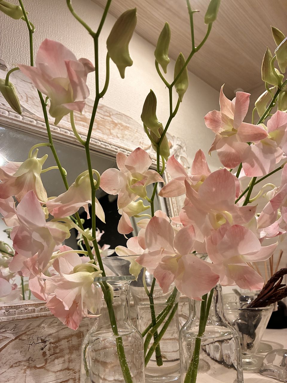 こんな色のデンファレ、初めて見ました 淡いピンク色がホントにかわいい🩷 見るたびににやけてしまいます