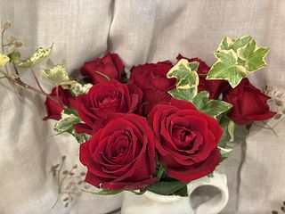ゴージャスな真紅のバラです! お花がシャキッとしていて、長持ちしそうです。 一本折れていましたが、お花は元気なので、小さいグラスに飾りました。これはこれでステキです!