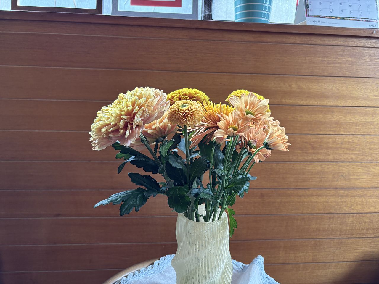 秋に旬を迎えるマム(洋菊)、比較的長く楽しめるのも嬉しいポイント。