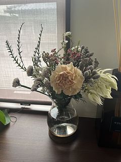 初めて購入いたしました インスタでみかけて、どれも素敵なお花ばかり、いつもはお店で購入するのですが、珍しいお花も入っていて、とても気に入り、注文しました 2日後に綺麗に梱包されていたのでお花の傷みもなく 思っていた花束が、届きました カウンターにスペースを空けて待っていました やはり生花は良いですね♪ 一気にお部屋も素敵になりました また素敵なお花待っています