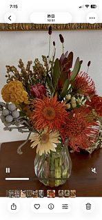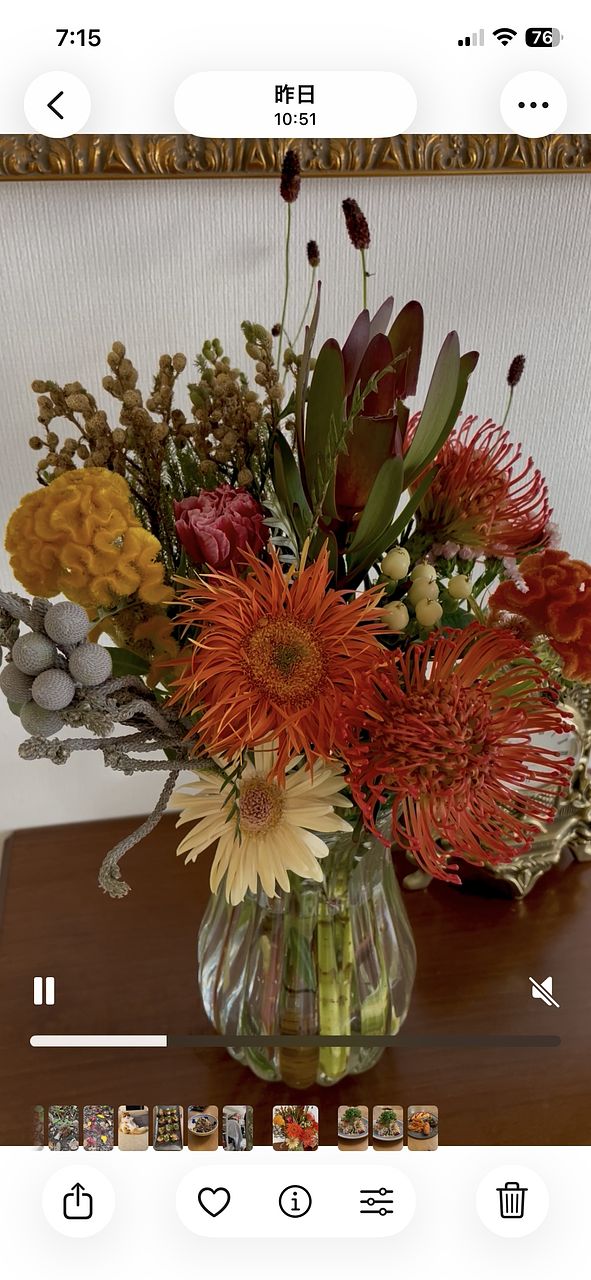 ネイティブフラワーやこっくり秋色のドライ向きのお花やグリーンと一緒に束ねました🧡
