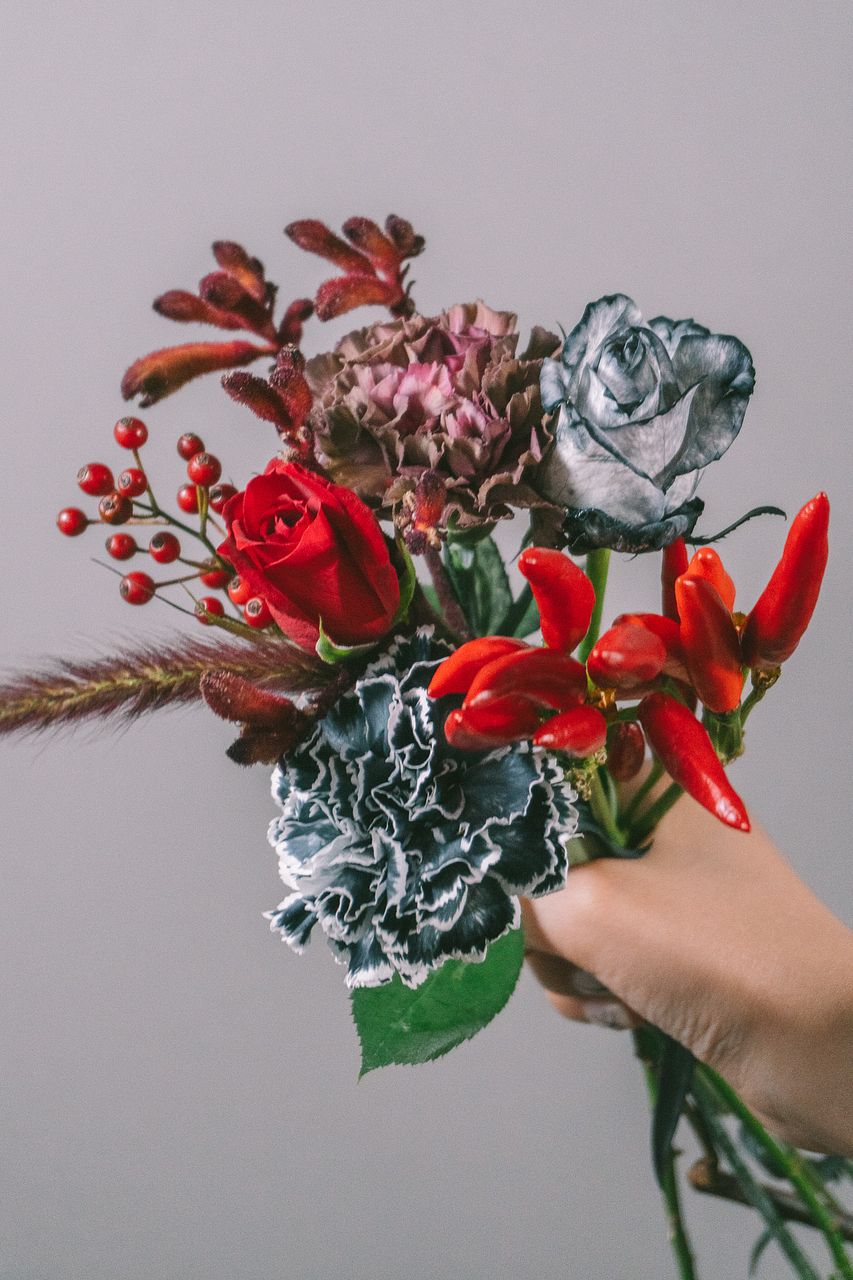 やわらかな白とベージュのブーケは“天使”のようにピュアでやさしく👼漆黒に赤を重ねたブーケは“悪魔”のように艶やかで魅惑的👿