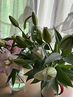 前回が素晴らしく状態がよくて、今回は二箱頼みました。前回が一輪以外すべて蕾できたので良かったのだとおもいます。今回はまず咲いているものは全て花びらのふちが茶色になっていた。そういうのもあるのは、分かっていましたがひどすぎる。あとは写真をみてください。百合が大好きで以前もよく頼んでいましたが、酷い状態が続き頼むのを辞めていました。今年に入って一回頼んでやはりダメで、でも欲しくて、先週来たのが良かったので、今回も頼んだら案の定でした。皆さんのレビューがいつも綺麗とか書いているのが、不思議です。配送、梱包、それとも私の運が悪いのか分かりません。一枚目は今日写した先週きた百合です。