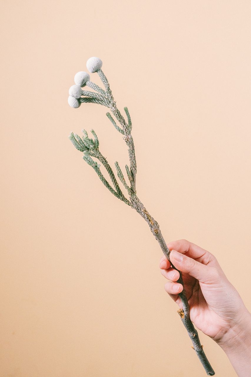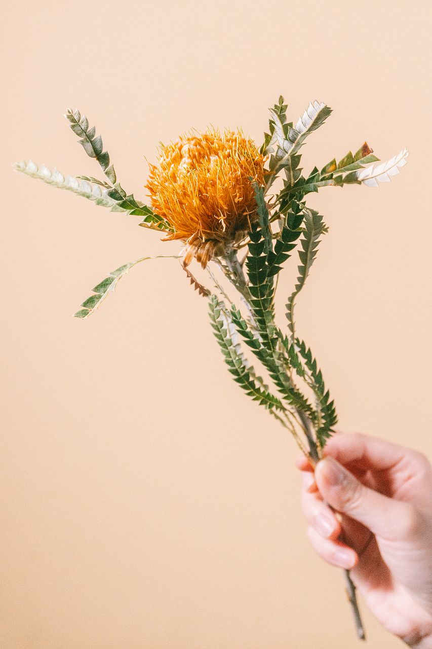 木の実のようなネイティブフラワーを中心に束ねることで、ナチュラルで落ち着いた雰囲気に。