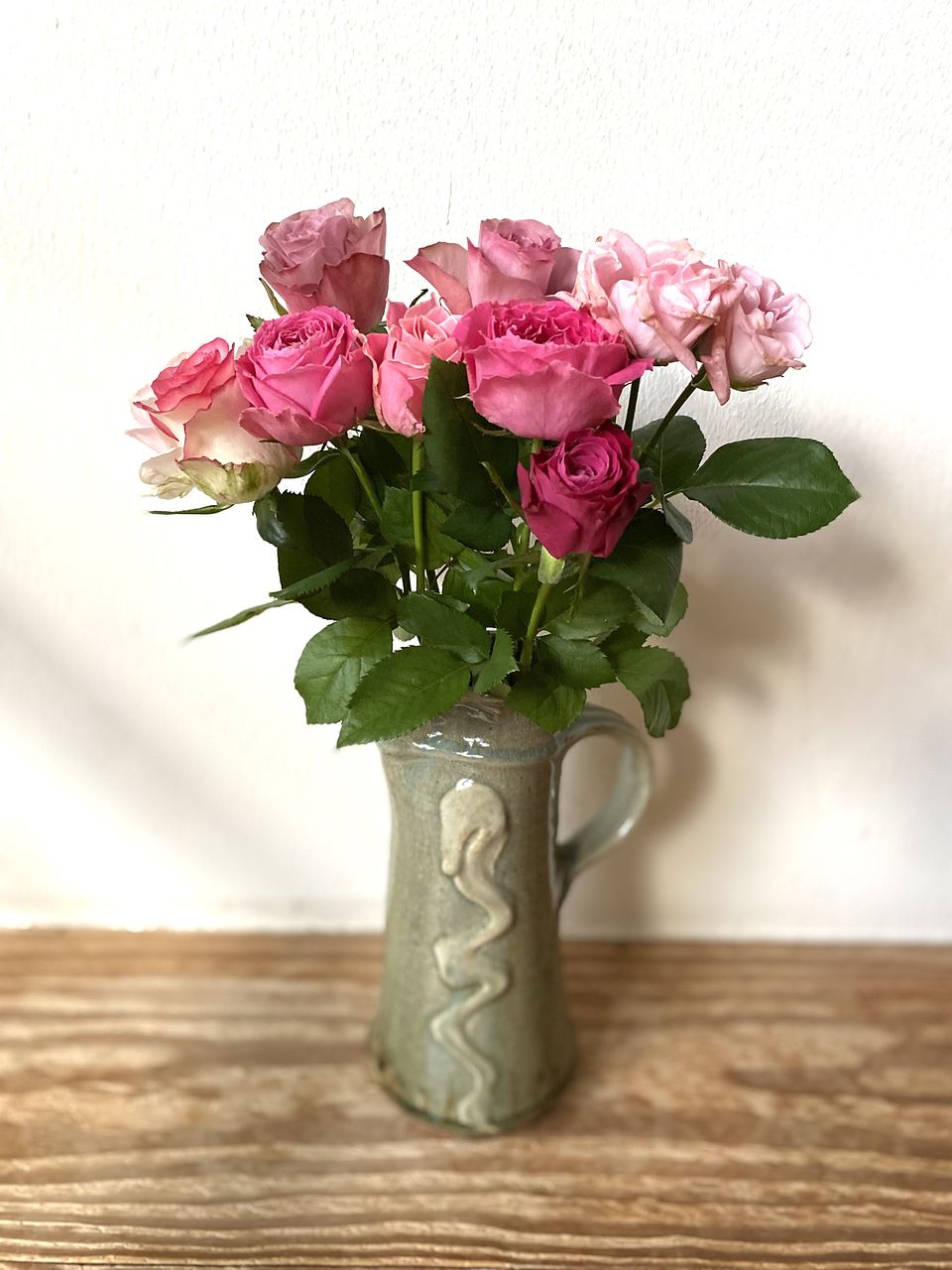 ピンク色の様々なバラやスプレーバラを贅沢に、たっぷり9本をセレクト🎀