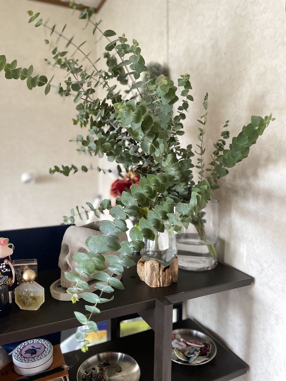 ユーカリの新芽は土からの栄養が足りず、切花になるとどうしても萎れています。とっていただきお楽しみください。