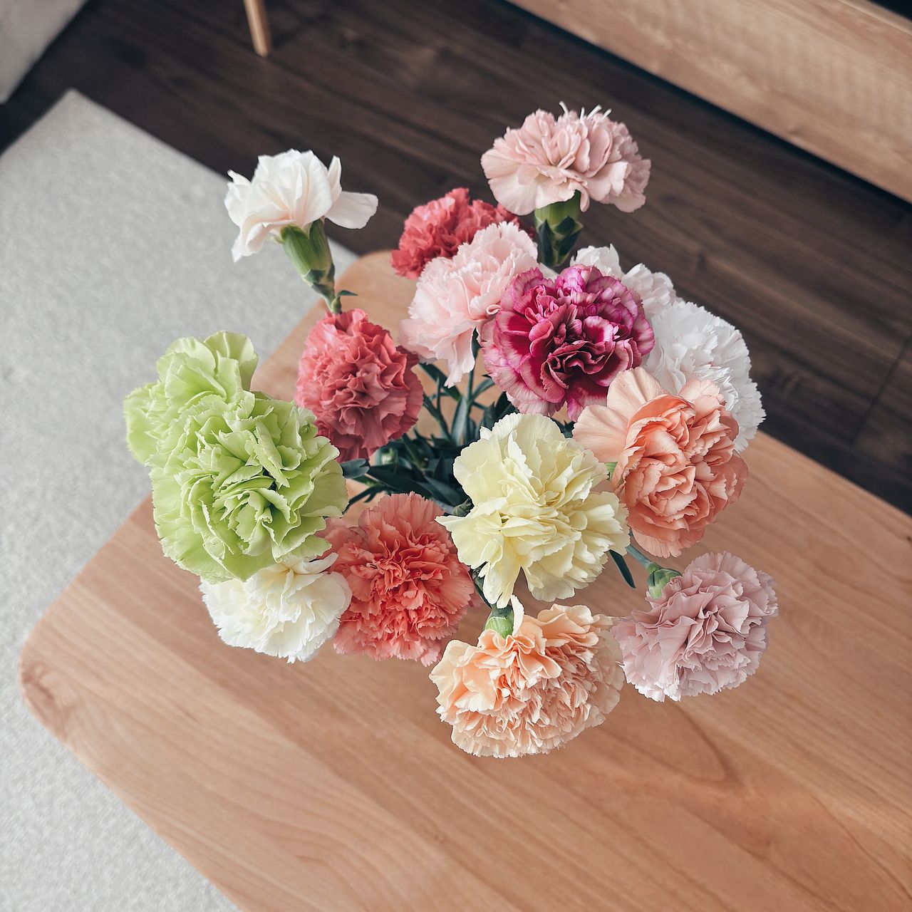 カーネーションにこんなに色んな色があって可愛いので気に入りました💮