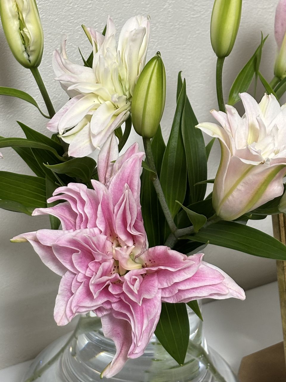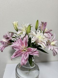 気になっていたもののイメージがわかず躊躇していましたが、大当たりでした! 八重咲きってとってもエレガント!百合の香りもほんのりして癒されます。本数が少なめかなーと思いましたが蕾が沢山付いていてボリューム満点です! 長持ちするようお世話を頑張ります💪