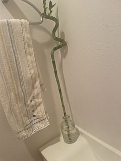 幸せ呼んでくれると信じてヘビのような珍しい姿が印象的なバンブー購入しました。根が生えていました。管理はどうしたら良いのでしょうか?わからないからとりあえず長めのシリンダーにぶっ込んでみました。 成長が楽しみです。