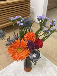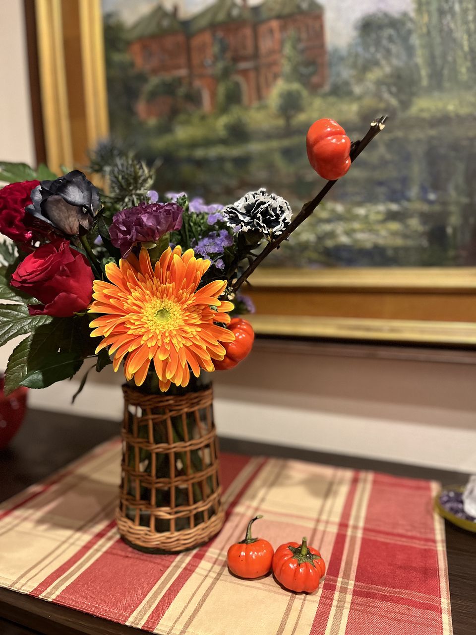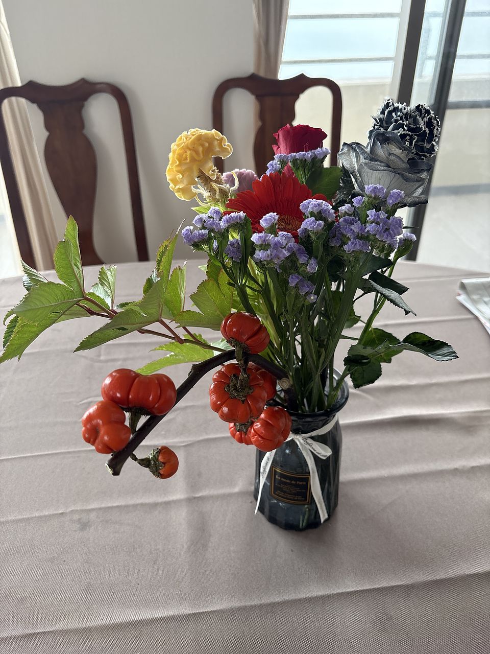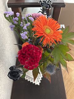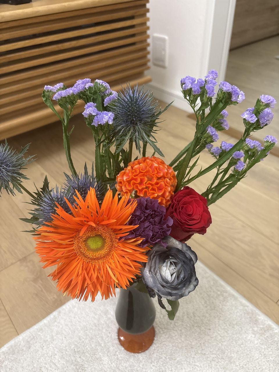 ハロウィンらしく、黒いバラが 入っていて、自分では選べないお花💐🪻が、 新鮮な気持ちにしてくれました♪